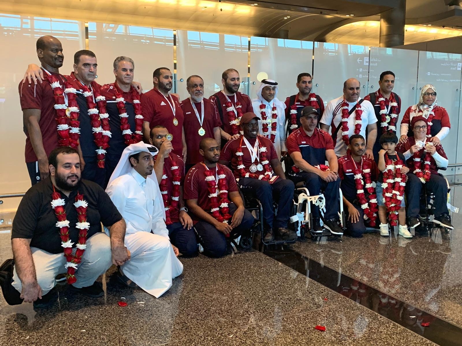 حظيت بعثة منتخبنا الوطني لرياضة ذوي الاحتياجات الخاصة باستقبال حافل بمطار حمد الدولي في الرابعة من مساء أمس الأحد وذلك عقب عودتها من المشاركة في بدورة ألعاب غرب آسيا البارالمبية الثانية التي أقيمت في الأردن خلال الفترة من 15 إلى 21 سبتمبر بمشاركة عد كبير من لاعبي منتخبات غرب آسيا.